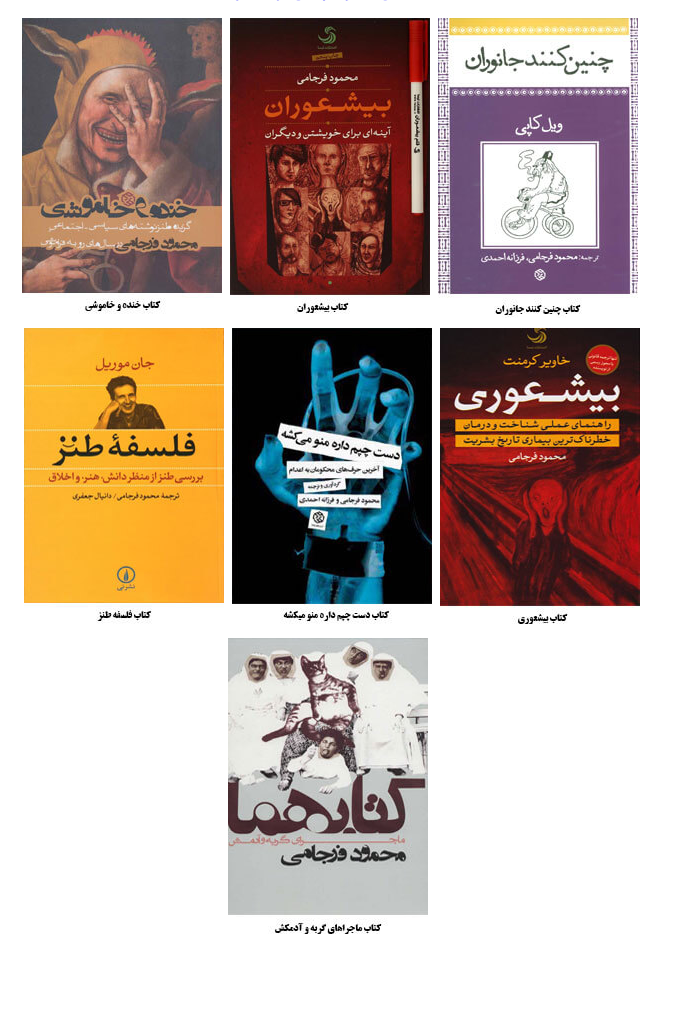 محمود فرجامی کار ترجمه به صورت حرفهای را با ترجمهٔ کتاب Assholes No More اثر خاویر کرمنت آغاز کرد. فرجامی کتاب را تحت عنوان «بیشعوری» در سال 1387 ترجمه کرد، ولی در پی دردسرهای فراوانی که خود او در مقدمهٔ ترجمه مفصلاً و با زبانی نیشدار شرح داده است، تصمیم گرفت نسخهٔ پیدیاف کتاب را در سایت شخصی خود به رایگان در اختیار خوانندگان بگذارد و از خوانندگان خواست اگر از خواندن کتاب راضی بودند به میل خود به اندازهٔ پول یک پیتزا به حساب او واریز کنند. نسخهٔ الکترونیک کتاب بیشعوری شدیداً مورد استقبال قرار گرفت و هزاران بار دانلود شد. نهایتاً بعد از پنج سال انتظار برای کسب مجوز چاپ، کتاب در سال 1393 توسط انتشارات تیسا به چاپ رسید. استقبال از نسخهٔ چاپی نیز بسیار زیاد بود. کتاب بیشعوری تا امروز بیش از دویست هزار نسخه در ایران به فروش رفته است. کتاب بیشعوری به طور جداگانه در در افغانستان و لندن نیز به چاپ رسید. همچنین محمود فرجامی به همراه دانیال جعفری در سال 1392 کتاب فلسفهٔ طنز اثر جان موریل را به فارسی ترجمه کرد و توسط نشر نی به چاپ رسید.